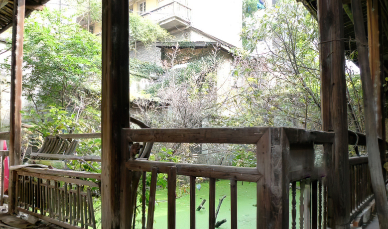 主座东侧为花厅,是陈家的园林,名为“梅舫”,面积约300平方米。园西隅有木构书屋3楹,共36平方米,明窗、地板,单披水,风格朴实。有小楼一座,名“天香楼”,傍假山而建,面积约20平方米,小巧精致。以假山凿成踏步上楼,楼沿木栏杆设美人靠,檐作小翘角,悬2吊柱。