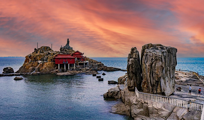 说是在宋代,龙台村出了一位状元叫林存,被皇帝招为驸马。一个晚上,林存与公主在床上嬉戏过后,神采飞扬地描绘起自己的老家来。他说,自己的老家有“千里花园,万亩鱼池;双龟把口,五虎守门”。还说,自己从小就是在“玩龙台,睡凤窝,吃金舂白米,佐银鱼干汤”中长大的。另外,老家还有“日出西洋镜,雨落打十番”的美景,以及“双狮戏珠,九龙卧波,金鸡报晓,白猴镇江”等绝佳景观。这样的奇景,哪能随便就能瞧得到?驸马的绘声绘色惹得公主心里痒痒的,恨不得立即就飞到夫君的家乡。第二天一大早,公主就急切地向皇帝老爸转述了驸马爷所描绘的一切,要求与驸马一起去岛上玩耍。没有想到,皇帝岳父不听则已,一听龙颜骤变,尤其是听说驸马居然口出狂言,从小就敢“玩龙台,睡凤窝”,那还了得!最后,公主去岛上玩耍不成不说,驸马爷还落了个立马被斩的下场。实际上,林存所描绘的确实是岛上的风景,只不过那些村名如龙台、凤窝之类,太過于诗意招摇了,状元郎太有才,描绘得太逼真了,以致让皇帝信以为真,惹祸上身。皇帝事后得知这不过是小夫妻床头戏言时,虽也懊恼一番,但人死不能复生啊,龙台驸马爷的故事,也只能留给后人去唏嘘了。
