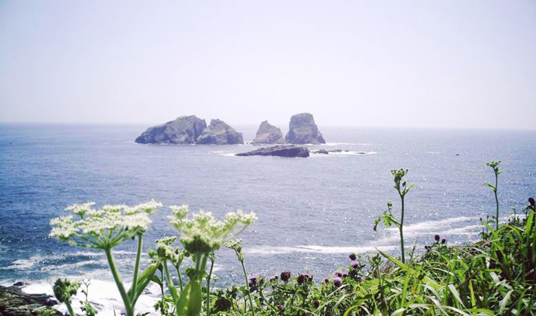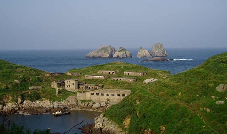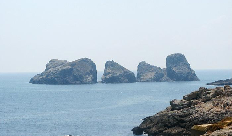 五虎礁基部相连,靠东北端一虎,上座白瓷土,呈灰白色,人们称为“白虎”;中间第三虎,翘首回望青芝山虎洞,似在眷恋山上的巢穴,人称回头虎。观赏五虎礁,要找合适的角度,一般从五虎礁侧立面150米左右,愈看愈像。长门古炮台,双龟把口,五虎守门,构成了闽江天险,五虎礁上的岩石,因受狂风大浪长期冲击,峥嵘怪异千姿百态,饶有情趣。