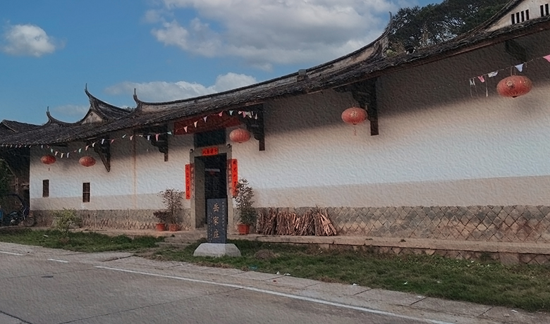 在老街区一片古厝建筑群的深处,有一座以主人名字命名的“黄栋起古厝”,简称“栋起厝”,建于清宣统元年(1909年),距今112年。其占地总面积3000多平方米,建筑用地仅550平方米。厝前有宽敞大气的埕地,远处是连绵群山相朝,堂前明亮,阳气充足;全厝周边有完整的围墙,转斗大门、两旁耳门一应俱全;埕坪、廊沿、沟坎虽河卵石铺砌,却皆平直夷坦、高低有秩,边角缀以草坪、花圃、绿树、竹影以及陶石摆件,是一座花园式的古厝。