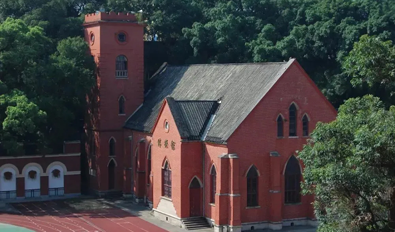 1905年前后,鹤龄英华书院在鹤龄楼的基础上,又兴建了礼堂、钟楼等,形成了颇具特色的西式建筑群。其中有一座“美志楼”,又称“施教室”,是为纪念英华书院第二任校长GeorgeBloodSmyth(施美志先生)夫妇建造的建筑。施美志是中国最早的基督教青年会创办者,于1883-1899年间,在鹤龄英华书院任教,后因病返回美国。