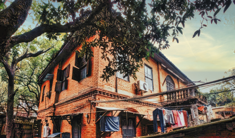 第一进厅堂中间摆了张椭圆长桌,两侧放着四张长椅,供老人们在此读书学习,看报写字。厅两侧镶着一幅对联:“陈留世第扬正气,闽瓯师表誉神州”,时刻不忘祖上兴学教化之功。