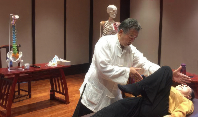 叶氏理筋疗法对“筋”的理解比较宽泛,除了与十二经脉对应的十二经筋和联络各关节的筋以外,皮下的筋膜和脏腑、肌肉、骨骼表面的筋膜以及各脏腑之间互相联络的筋膜,都被归为“筋”的范畴。在传统中医“望、闻、问”的基础上,叶氏理筋疗法以“骨正筋柔,气血自流”为准则,手法摸查有骨不正或有筋结、筋紧、筋厚、筋胀、筋无力等筋不柔的异常状态(病灶)后,再用“按、揉、推、拿、捏、摇、顺”等理筋手法或结合针灸和运动疗法将异常的筋骨状态调理到骨正筋柔的正常状态(消灶治病),逐步使气血得以顺畅自流,病症也就随之得以消除。