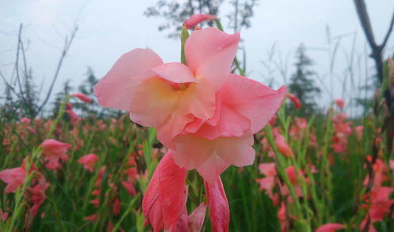 惊蛰前夕,蚕豆幼苗饱吮水分,攒足气力,争先恐后往上蹿个子。不消时日,花枝顶端背部冒出一丛丛白色髯毛,一簇簇蚕豆花挤挤挨挨钻出来。花冠白色呈蝶形,旗瓣分布紫红色斑纹,翼瓣椭圆形状,两侧若浓墨泅染晕开,花托作耳状三角形,显得内敛清婉,应了清人汪士慎《蚕豆花香图》诗中的描绘:蚕豆花开映女桑,方茎碧叶吐芬芳。田间野粉无人爱,不逐东风杂众香。