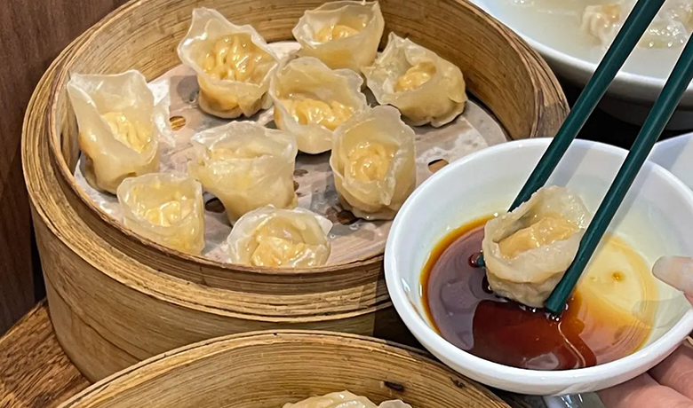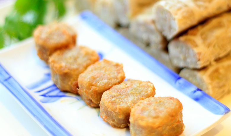 连江古蒸鱼燕是在鱼饼的基础上演绎而成的,是福州地区一道独有风味的民间小吃。古蒸鱼燕主要取材于水上船家”疍民”海钓所得的青鳗鱼,其口感关键在于鱼燕皮的加工。首先将鱼肉剁碎加盐巴,多人合力将鱼肉摇至光泽细腻、有弹性,最后加入上等番薯粉擀出有劲道的鱼燕皮,再用上等鲜猪腿和鲜虾加入土鸡汤作馅,包成元宝形状的鱼燕,滑腻爽口,风味独特,食之不腻,百尝不厌。