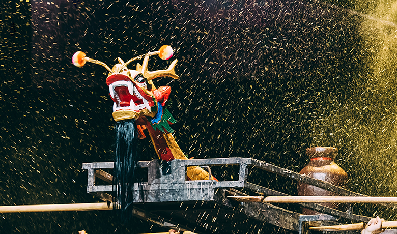 第三次“点塔灯”是清同治三年(1864年)。当时方圆十里的男女老幼纷纷赶来参加,台阁、行舟、龙灯、舞狮等民间文艺节目鱼贯而过。倾城狂欢,通宵达旦。