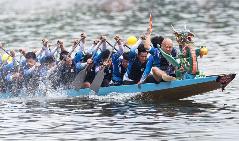 有了龙舟,端午节就更热闹了。问题是闹龙舟非要比个输赢不可。家乡的前方有座小岛,坐船几分钟就可到岸,隔岸讲话几乎都能听清。两座岛屿间的人们大多有着“亲家”关系,或是我们村的姑娘嫁到小岛上,或是我们村的小伙子娶了小岛的女孩做媳妇。平日里,姐夫啦、亲家舅啦,喊得热乎乎的,可端午节一到,亲戚似乎就被忘到脑后。大家都晓得,上了自村的龙舟,一划起来,输赢就是关系到全村人的大事。