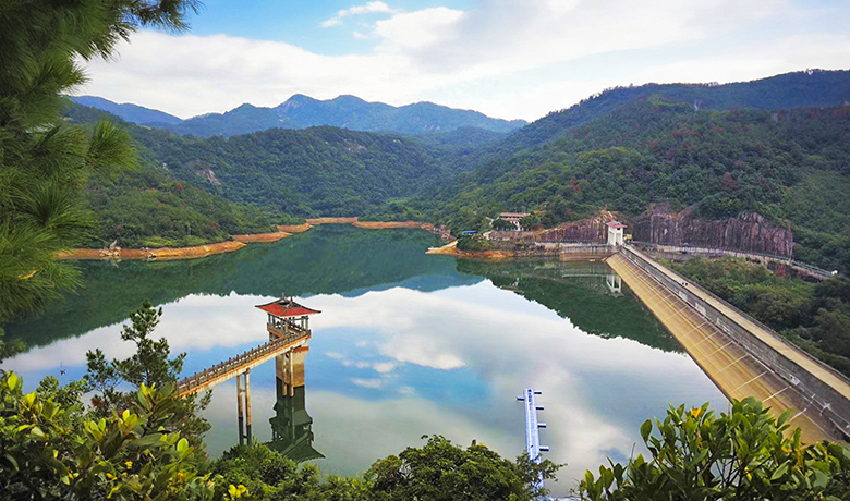 带我前来的朋友老赵,军人出身,后成为一家报社的资深记者。他告诉我:这就是白眉水库,位于亭江镇山中的白眉溪中游。水库于1998年开工,2001年竣工并投入使用。它的建成,不仅改善了郊区饮用水质和开发区投资环境,同时也解决了附近乡镇农田灌溉、防洪排涝等问题。如今这水库,已然是一座人工湖,水源充沛,水质优良,达到国家地表水环境质量标准,市郊居民也幸福地用上了生态水……