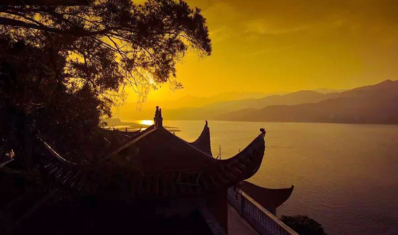 站在被岁月婆娑过的瓦檐下饮一盏禅寂的清茶看一幅夜漱波心月的秀丽画卷,金钟阁仿佛是漂浮在水天尽头的迷人岛屿,静静等待寻常的过客揭开它神秘的面纱。​