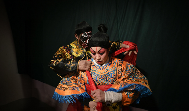 乡亲们天天在地里耕作,一旦闲下来,生活中就缺少很多东西。晚上打谷场上要唱戏了,老老少少安闲的时光里,一下子就有了滋味,村子也沸腾了起来。乡村戏事在乡下是个挺大的事儿,我们那儿称“唱大戏”,规模再小,也都这么叫。
