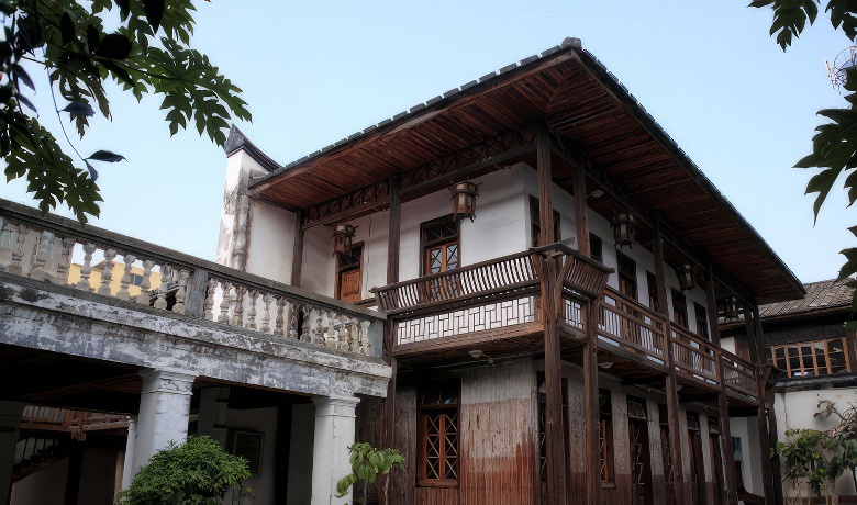 故居原占地六亩,有假山、鱼池等胜景,今仅存三开间的首进院落一进。方氏后人方贤齐记忆中的九彩故园则要更具体些:“大致格局由三部分组成,大门进去是‘三间排’,那里属于长房居住,也就是方家澍这一支。堂屋等是家庭庆典集合之所在,两侧有卧房,听说还有小楼。第二进是方家湜这一支,称为‘前池’。再往后是‘后池’,临池有一座敞厅,是休闲娱乐的场所。后池的周围有些花木,假山有雪洞……两个池塘成了标志,族人们也常以前后池来称呼,比如‘前池老姨太’‘后池小妹’。记得当年方家澍是进士,门口的牌坊还有‘朝元第’。”