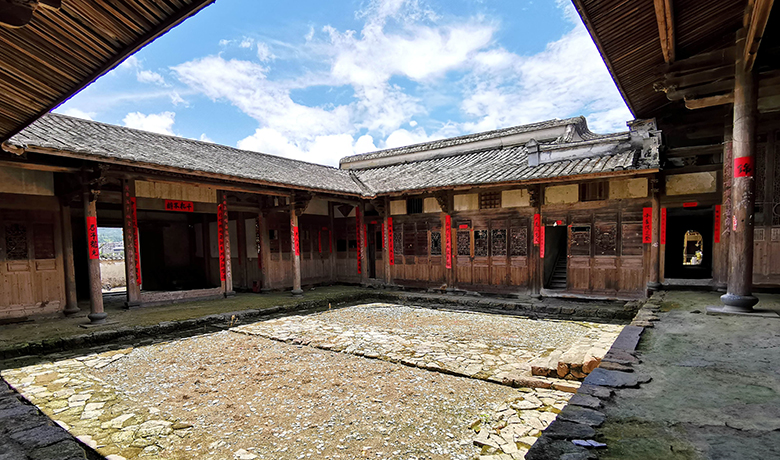 我于院墙外驻足仰望,天边霞光更艳,昏黑的二层老宅的轮廓似乎也感受到了落日的迫近,在我眼中波动,似要借此摆脱外形的桎梏。恍惚间,我仿佛看到它蜕去了沾满烟尘的岁月的躯壳,又看到了悬于太师壁上的“会魁”匾额,又听到了甘氏子弟演练梅花棍的阵阵喝呼。