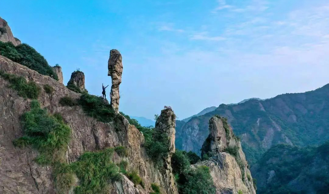 我们一行经过一座大约明清时期的古宅,一问才知这栋古宅是侯氏祖宅,占地面积约1000平方米,鼎盛时期住了上百人,有20多间房。村内还有两三处明清时期古宅,整体建筑保存完整。刚下车,抬眼西望,一座山峰突兀眼前。山顶巨岩如鲲鹏展翅,意在冲天,那就是优山顶。