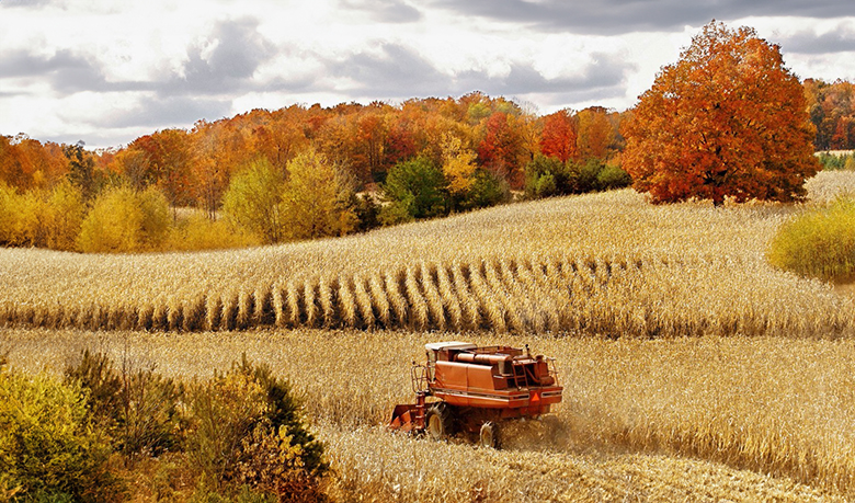 我站在一片金色的流光里,左边是柿子和大豆玉米,右边是一片小小的梯田。柿子满枝,大豆玉米鼓胀着丰收的脸颊。金黄的稻穗怀着款款的深情,低头和滋养它们的土地喁喁告别。收割后的田里露着褐色的稻茬,大地丰硕而又空旷。