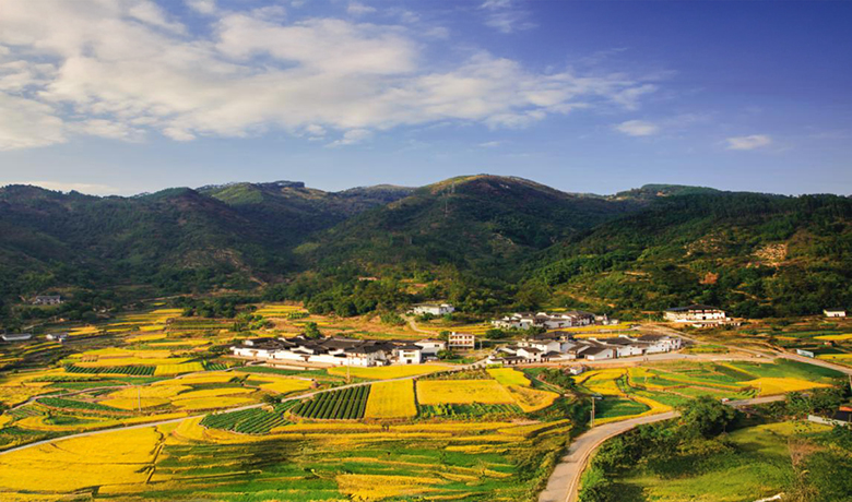 我曾多次来此,每回走进她,目之所见,心中所触,均是满满的美好,每年10月,晚稻成熟,整个村子犹如一幅田园山水写意画。阡陌之间,家家户户都在忙着秋收,脸上洋溢着丰收的喜悦。金色稻浪簇拥着白墙灰瓦的古民居群,有种到了“婺源”的错觉。