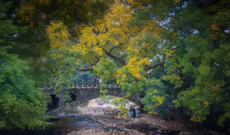 王维的秋日,宛如一幅清新脱俗的山水画卷。“空山新雨后,天气晚来秋。明月松间照,清泉石上流。”一场秋雨过后,秋山清新如洗,清爽宜人。时近黄昏,日落月出,松间光影斑驳,静谧而美好,清泉在石上潺潺流淌。此间意境,恰似“诗中有画,画中有诗”,诗与画交融,深远而隽永。王维以诗为媒,将自己对隐逸生活的向往和对纯净心灵的追求,都融入到这幅自然之画。这一刻,令人恍若置身其间,与诗人共坐林间,品味那恬静淳朴的怡然自得,仿佛步入一个远离尘嚣的世外桃源。