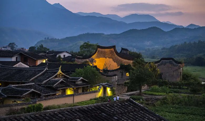 其中尤以龙口祖厝为代表,始建于宋朝,重建于明万历年间,是古镇上规模最大的围拢屋式民居,由仙游迁入的郑氏族人修建,后人还以龙口祖厝为起点,陆续修建了和也厝、宴魁厝、拔魁厝。这里有一条鹤形路,更是难得一见。它因从高处俯瞰整条巷道形似鹤项而得名。鹤形路修建于宋朝,鹤嘴即龙口厝的入厝通道,全长弯弯绕绕约150米,两旁墙基由大小不一的鹅卵石砌垒而成,象征鹤的食道,寓意鹤寿延年。这条路活灵活现,仿若仙鹤一声长鸣陡然升腾,守护着一方故土。
