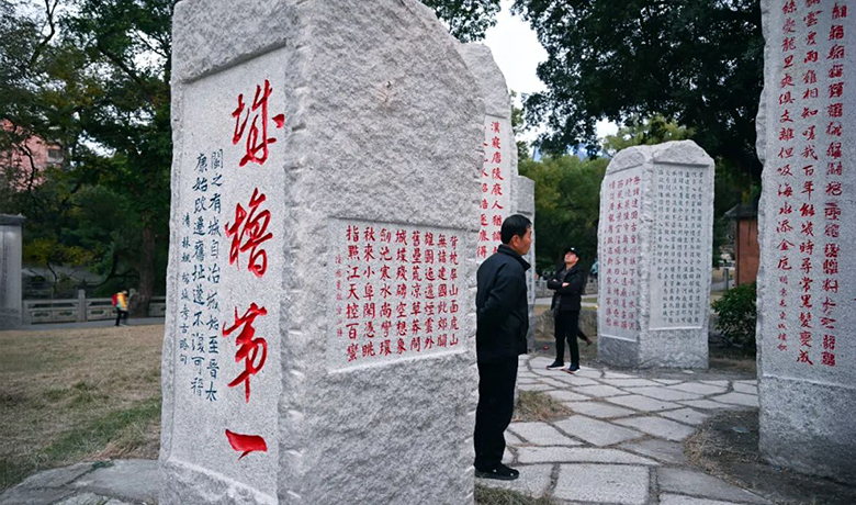 明代儒将陈第游览长汀状元帽时曾作《云汀巍石行,酬刘学博、陈山人》:“云汀之石何崔嵬,丹青窈窕临江开。停停壁立十余仞,澄波素练相萦回。上有缤纷不老之藤树,下有葱菁未扫之莓苔。扪萝直欲陟其顶,路穷径仄空徘徊……”当代连江邑人、红学专家秦淮梦也曾题诗曰:“紫碣玲珑峙岸边,劫波历尽自巍然。题崖进士知何去,逝水悠悠绕石前。”既可应景,又怀先贤。