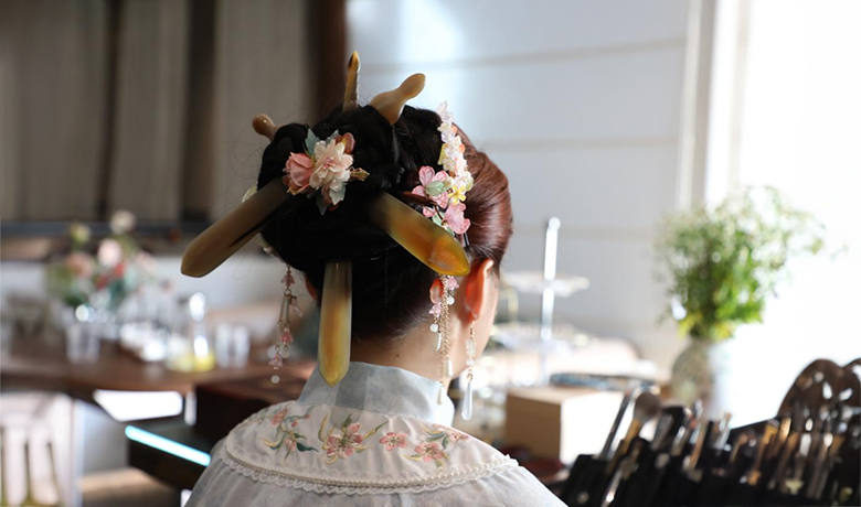 三条簪代表自信、吉祥、美丽。这是女性穿越千年的自我塑造,为福州所特有。晋酒簪花,赏心乐事。“你簪了吗?”这就是外地到福州的时尚女郎,非给自己一个“刀图腾”不可的理由!
