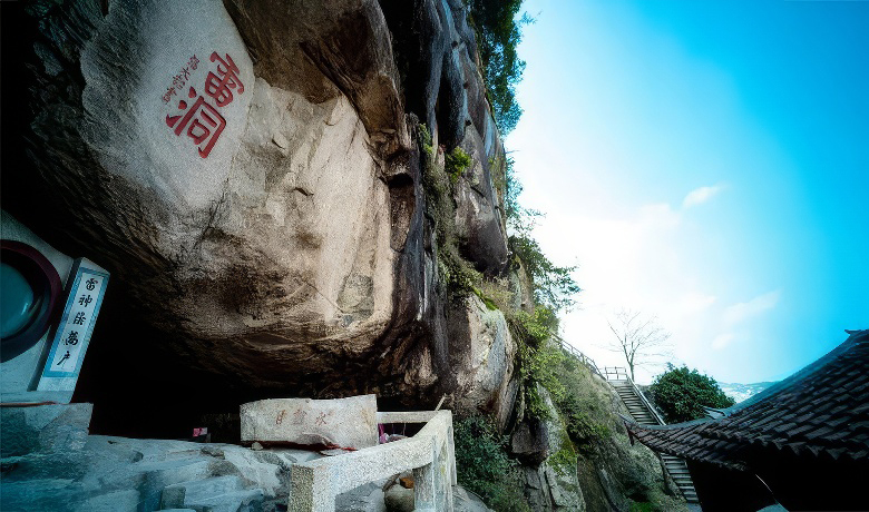 另据《永泰县志》卷三十四“文物名胜”记载,八百年前宋代的张仁裕在岩石上题了一首诗:“巍峨嵋壁立山巅,瞧步云生别有天。豹脊歌支依古洞,龙口幽德涌清泉。钟声远应千峰间,雾艳长空万壑连。登眺陶然忘薄暮,依僧留宿细谈禅。”这是方壶岩寺保存至今的最早一首石刻诗,十分难得。