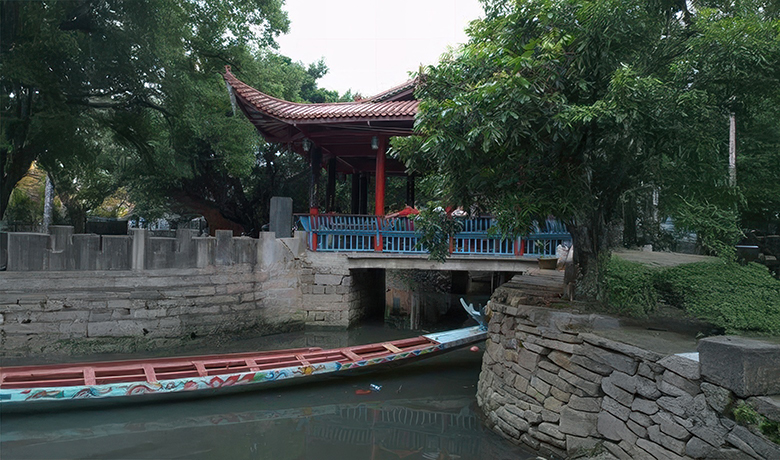 市场直行200多米,就是盘屿大头村「盘屿桥」。因为坐落在盘屿大头村又叫「大头桥」。该桥有明确纪年,具有史料价值。1992年12月被确定为区级文物保护单位。盘屿桥,用三块巨石作桥梁。桥梁上镌刻:「时政和七年岁次丁酉仲夏日□□张遂造」;「叶卅六娘为四恩三有舍桥一□□延福□」。「政和」是北宋宋徽宗赵佶的年号,政和七年是公元1117年,距今一千多年了。