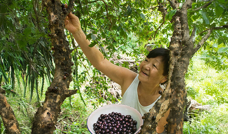 第一次见识树葡萄,是在风景优美的睡美人山的玫瑰谷。我惊讶地发现,玫瑰谷里有几十棵树的树干上铺满了黑亮的果实,圆圆的,外形酷似葡萄。玫瑰谷的主人告诉我,这树叫嘉宝果,因为果实形状酷似葡萄,所以,俗名叫树葡萄。