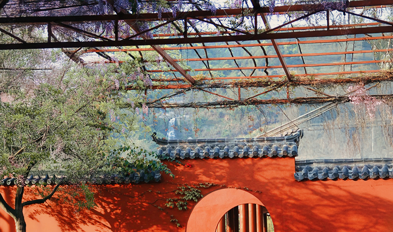 暗香最先漫过明代石碑。扫雪僧的芒鞋刚触及大悲殿前的青砖,忽见几点朱砂似的艳色撞进眼帘。抬头望去,五百株宫粉梅正与雪色较劲,白梅似云絮缀玉,红梅如血沁冰绡。有个举着相机的姑娘在梅林里跺脚,镜头追着被风掠起的绯红花瓣,却见那抹艳色飘飘忽忽,最终落进大雄宝殿前的铜香炉,与将熄的香灰同眠。