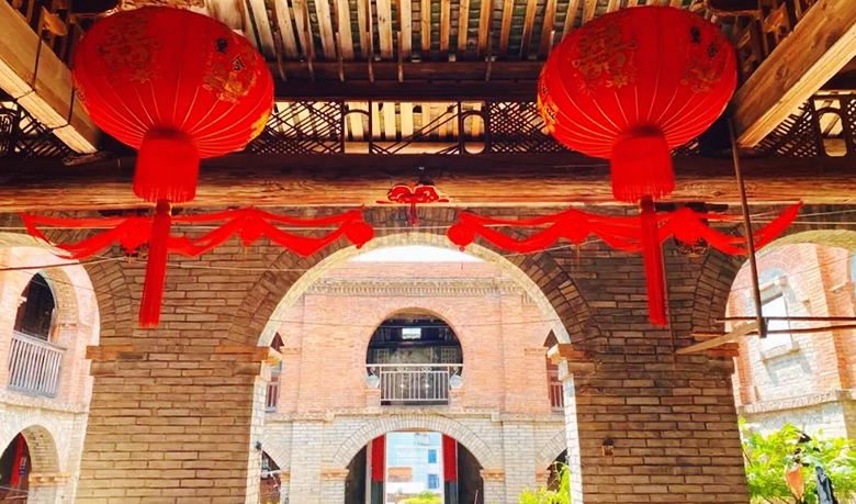 故居大门庄重威严,共六扇门扇,迎面设有一块精雕细刻的插屏,左右两侧为耳房。穿过屏风,高大的围墙环绕着石框二门,门后是宽敞的天井与回廊。正座建筑宽达13米,分为三间房舍,进深16米,布局考究,前后厅室与房间错落有致。特别是大厅的构架,驼峰、斗拱、吊柱以及雀替等部件都雕刻得栩栩如生,极具艺术观赏价值。故居内的窗门装饰着各式精美的漏花图案,样式层出不穷。故居以精美的雕刻和装饰闻名,内含独特的“梅舫”花园和“天香楼”。