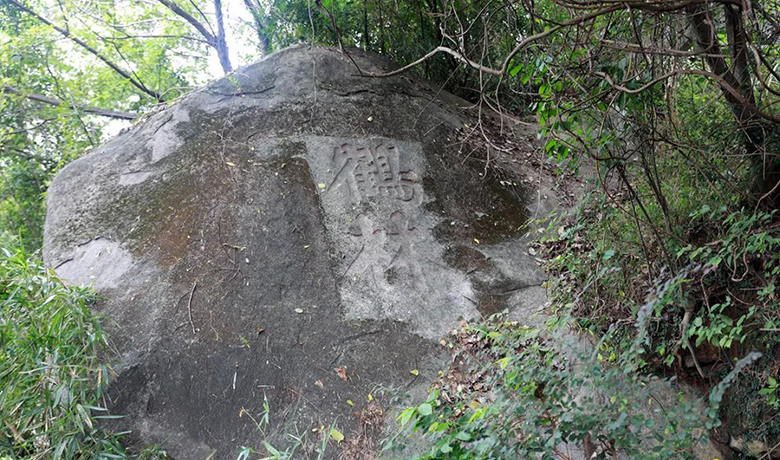 在溪边首先看到就是“鳝溪”题刻,石刻位于射鳝潭西北侧溪边。南向,石刻高1.2厘米,宽2.3米。楷书,横1行,纵4行,正文字高0.82米,宽0.59米,旁款字径0.08米。文:鳝溪,康熙六十二年壬寅重九日,闽中胡玠、严来、徐楚、周鹏翔、严思成、陈俊琏同勒石。”康熙六十二年壬寅”,年代有误,因为康熙在位只有61年。从字体上看,比较大可能是被好事者加一划成为”二”字,当然具体真相就不得而知了。