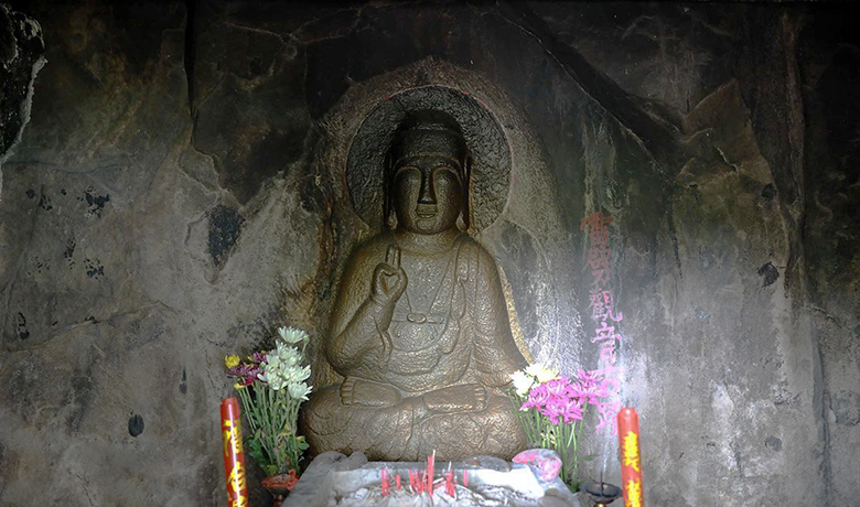 泗洲佛亭如今四周虽说高楼林立,但其仍香火不断。此期间就遇上两拔虔诚上香的信众。一拔是原连潘村民,另一拔是附近小区业主。在与这位连潘村民大姐攀谈中得知,原泗洲佛像被盗,现存佛像是十余年前重塑的。
