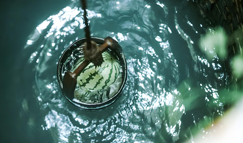 过去到了三伏天的末尾,父亲仍会把西瓜放进井里,等到傍晚时分,将井绳一提,冰镇的西瓜就“破水而出”了。一刀切下,红瓤黑籽都露了出来,果肉还带着丝丝凉气。我总爱坐在门槛上吃瓜,一不留神果汁滴落地上,蚂蚁还会闻着味来尝一口。阿嬷怕我吃得急伤胃,经常一边摇着竹扇劝说慢些吃,一边又忍不住提起井里还冰着芒果和梨,让我想吃再去取。
