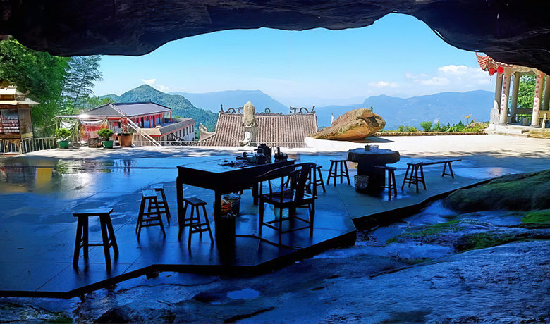 最奇特的,是寺后的通天洞。洞口不大,只有三四米宽,入内却别有洞天。洞深三十余米,岩壁倾斜向上,愈行愈陡,愈近天光。洞中冬暖夏凉,夏日外头热浪滚滚,一旦踏入,便有凉意袭人;而冬日里,暖气蒸腾,从洞口缓缓升起,与山外冷气交融成缥缈云雾,宛若袅袅炊烟,因而得名“炊云洞”,寺名“炊云寺”亦由此而来。