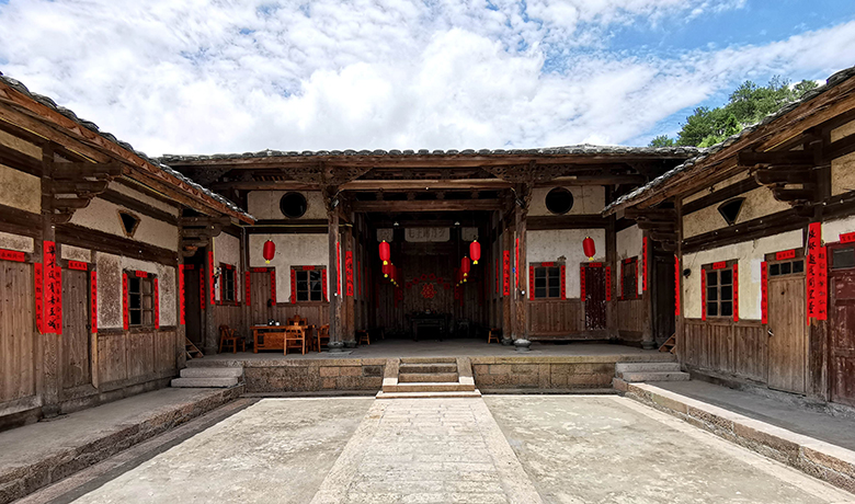 前后天井均以花岗岩铺砌,宽敞规整。左右梓院面阔二间,进深三柱,为双层楼阁,屋顶内斜。四面屋面均向内排水,形成“四水归堂”格局,寓意聚财纳福。后梓院与前梓院之别,在于其二层阁楼筑有栏厔,连通前后座,并设楼梯以便上下。各通廊弄口筑平台、铺设石阶以利通行,围墙上开设券顶槛门窗,兼顾通风采光。