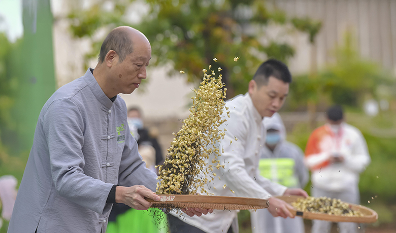左海公园洒满阳光的宽阔草坪,成了丝光椋鸟和庞大的麻雀家族的“露天食堂”。看着它们成群结队啄食草籽,听着鸣声啁啾,你或许会感悟到,生活的快乐其实很简单。