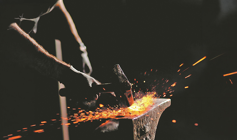 老师傅每天早早就守在铺子里,望着炉子出神。一旁的烟灰缸满了又空,空了又满,杯中的茶水淡得只剩下一缕微茫的茶色。有人劝他:“一大把年纪了,该歇歇了,况且打铁又那么辛苦。”他常常是“哼哼”两声,眼神含着笑意。他说:“并不是舍不得这门即将过时的老手艺,而是不想增添子女的负担。身体感觉还行,只是抡锤的胳膊不如从前自如了。”活到老、干到老,早已成为他职业生涯的底色,是刻在骨子里的执念。