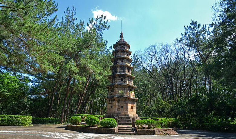石塔为花岗岩砌筑,八角七层,通高约8.9米。第一层高约两米,往上六层,层高逐级递减,至顶层,仅容一人弯腰立足。塔身由整块方石垒成,线条简洁而有分量。须弥座稳稳托住塔身,素面工字形基座不饰纹样,却更显质朴。南面开一小门,入内沿壁有石阶盘旋,可拾级而上,一层一层,像是在缓慢接近天空。