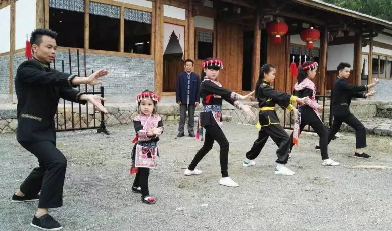 “八井拳“属南拳,创拳初衷是防土匪入侵。历史可以追溯到明朝,在明成化年间(1465 1487年)由雷安和、雷安居两兄弟将祖传的盘瓠拳术和南少林功夫融为一体,创造一套具有长拳短打特色的拳术及棍术。“八井拳”既有中国南拳刚健有力、迅速凶猛的特点,又有独具风格的攻防套路,动作多模仿动物,短促有力。其基本套路有龙庄、虎庄、半龙虎庄、五虎、七星、十八罗汉、齐楣棍术等套路,其中以半龙虎庄为最基本的套路,共12个动作(三箭、挖鞭、三击、牵基、圆化、赴掌、推马、掩耳、摘桥、三垮、按手、十字),每个动作基本是三步一反复,作完一个动作便要开声即大喊一声。
