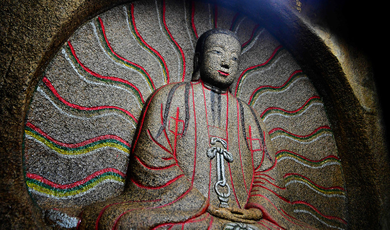 “翠旗名山”———旗山开门第一山,便是灵凤山。旗山内有“九庵十八寺”,而这开门第一刹,便是这灵凤山下的石松寺。石松寺位于旗盘峰脚下南屿坎水村,始建于北宋大中祥符三年(1010年),初名灵凤寺。后来在绍兴十年的时候,该寺住持天石僧人为了给寺易名,便在寺中大雄宝殿东侧的大岩石上“破石植松”,种下了三颗龙爪松,不知道是不是天石僧人施展了什么法术,这三颗松树竟然都成活了,一时间传为异事。于是天石住持改寺名为“石松寺”,并在这三颗松树的旁边立下块碑,题诗曰:“偃盖覆岩石,岁寒傲霜雪。深根蟠茯苓,千古饱风月。”并写下跋文:“绍兴十年立,住山老祖天石石山植松三本,一与寺门名实;二与山林为标致;三与一切人作荫凉。勿剪勿伐,永荫此山。”从此石松寺这大名便靠这三颗松树活广告被人熟记而流传至今。