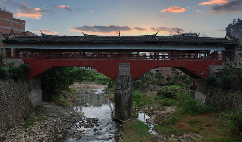 据碑誌记载:合龙桥首建于宋乾道年间(1165—1173年),毁于元之延佑;重建于明代万历,再毁于清甲寅之岁;清康熙三十八年(1696年),由里人郑克承乡绅倡募捐建。此次兴建气宇不凡:以条石垒于溪中为墩改换原来的木桩,以大杉木组成拱梁,在桥上构亭。有一段建桥佳话流传至今。