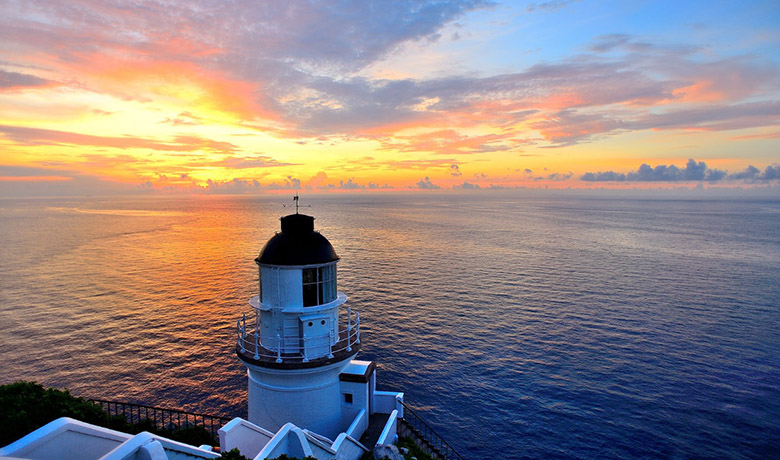 灯塔下方崖边设有雾炮两尊,现改增设雾笛1座,取代雾炮做为助航之用。灯塔面向东海,耸立於悬崖峭壁上的白色塔身,和崖下湛蓝的海水相互辉映,格外引人入胜。游客顺着低矮的白色水泥护栏蜿蜒而上,就能找到这座灯塔。