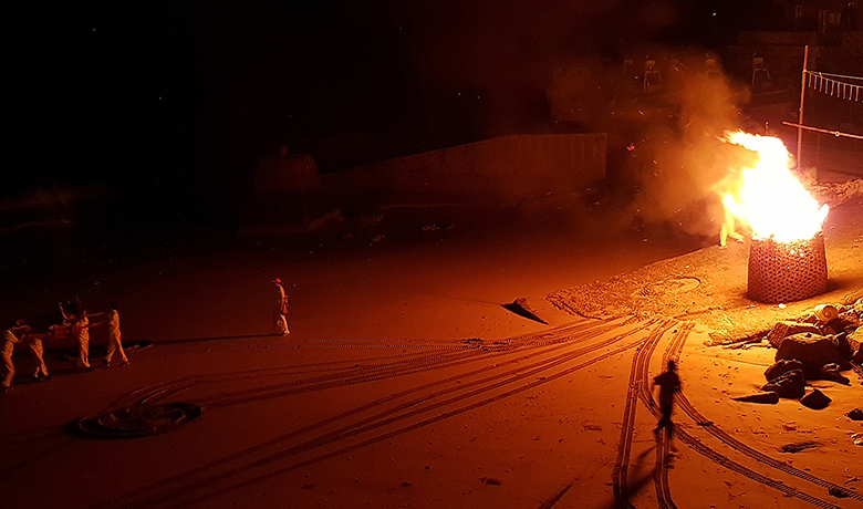 “摆暝”翻译成白话就是“排夜”,即为夜晚排放供品祭神酬神的仪式,源自于早期福州一带的农村,元宵节游灯时会迎各 境 的角头神绕境,祈求境内平安。 从农历一月十一日开始,各岛便开始总动员,全县各乡各村民众陆续在广场、庙前,搭起了一座一座牌楼,而迎神绕境的阵容也十分盛大,热闹非凡。 每个庙宇都有「行事历」,绕境、祭祀的时间全不同,并且相当欢迎游客拍照、共同参与。 事先调查好时间,比一比各庙宇的差异,是马祖元宵节最有趣的地方!
