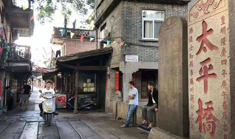 东关的太平桥,建于宋朝,清乾隆以来多次重建。现桥面为九块长条石铺就。东边桥头竖着“太平桥”石碑,为明隆庆年间蒋以忠所立。桥沿用石板护栏,整座石桥显得古朴厚重,据说,1934年,专员王伯秋还特地拓“太平桥”三字中“太平”二字,分发宾朋并寄情故乡湖南,以企求四方太平。太平桥虽然历尽沧桑,但当年古镇繁华的集市、商肆、熙来攘去的足迹,仍然可以从这儿找到历史的印记。那高低适宜已被磨滑的护栏,坐过多少歇脚的乡亲,坐过多少挑担的货郎,坐过多少负笈进京赶考的才子……而桥面走过不同服饰的士农工商,岁岁年年都在演绎着各自的悲欢离合。