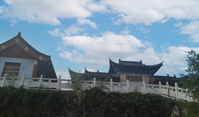 庙宇几经兴废。现已形成颇具规模的建筑群,有关帝庙、观音堂、戚公祠、半山亭、避雨亭、山顶公园等。关帝庙的建筑有些特别。庙宇土木结构,座东朝西。东面临宽阔的罗源湾,西面正对马鼻镇区,南面为南门村,北面为玉井村。西面不设正门,只开南北两道对称的边门,为进出庙宇的主要通道。庙不大,只一进深。关帝庙居中,左为观音堂,右为戚公祠,三座庙宇有边门相通,各自独立,又互为整体。走进庙宇,只见祭祀供桌上,烛光摇曳,香雾缭绕。正殿中央摆放着木质神龛,神龛雕刻精美,图案寓意吉祥;有丹凤朝牡丹,有蛟龙出海迎旭日,还有麒麟驾云献瑞。神龛中关圣帝君关云长塑像魁梧,威严,枣红色的脸,手握书卷,捋着胡子,肩披红挂,眼神凝重,身旁站着儒雅斯文的印管关平和严肃冷峻的护卫周仓。绕过天井,漫步回廊,可见张飞塑像,他腰别大刀,身着战袍,手执马鞭,紧拽缰绳,气概威猛。左边的观音堂里供奉着观音大士、地藏王菩萨、达摩祖师、弥勒佛尊天菩萨等诸神灵,右边的戚公祠里供奉着民族英雄戚继光。戚公祠内大厅两侧的黑色花岗岩石碑上,记录了戚继光的生平和他在马鼻一带领军抗倭的事迹,以及后人赞颂这段历史的诗篇。