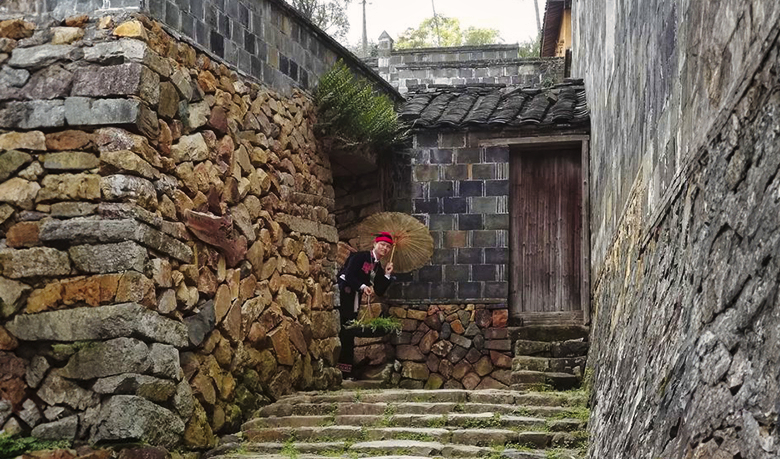 不过,人迹改变了村庄的位置,但无论住山脚还是山腰,不变的是风俗与人情。到了!跳下船头,竹丛掩映下,七里畲寨的牌楼修缮一新,周末还有几拨游人,都是一船一船过来的。沿石阶而上,现存的一片古宅几乎就尽收眼底了,屋檐灰瓦层层叠叠,有种世外桃源的错觉。