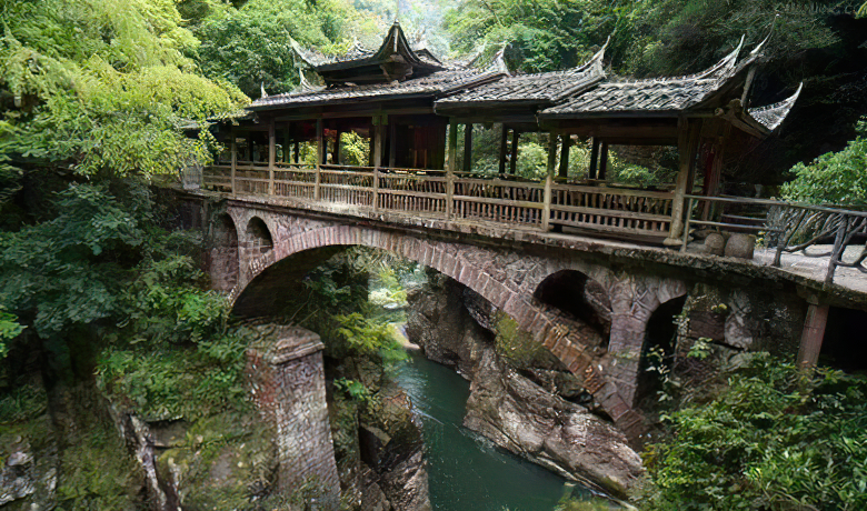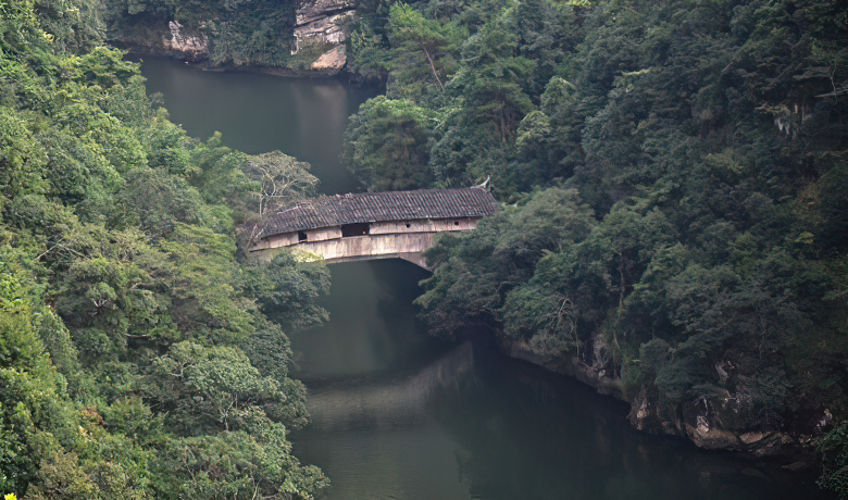 该桥建筑在金造溪下游的峡口处,地势险峻,溪流湍急,是东南地区的交通要道。桥长27.5米,宽4.9米,单孔跨径22.2米,桥面至水面高度19.5米(2000年因下游园坪电站建水库,水面升高,目前桥面至水面高度仅为6、2米)。桥屋建13开间52柱,九檩穿斗式构架,悬山顶。桥面以木板铺设,上盖以特制小块厚砖。