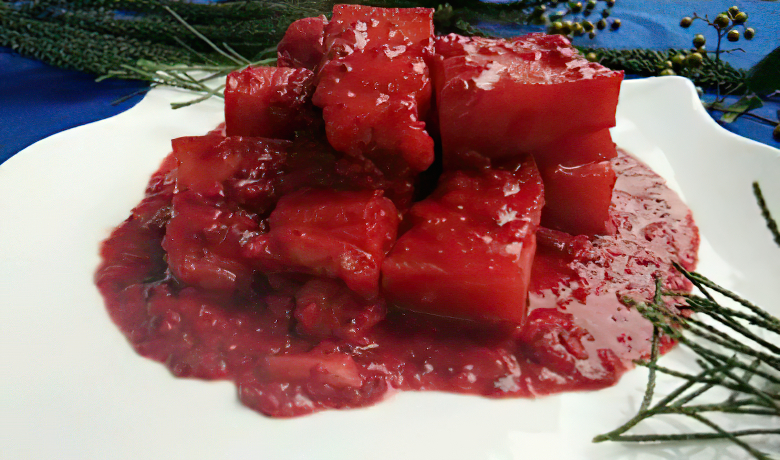勾粉芡,又称作薯粉燕,在福州地区,大凡称作“燕”的食物,要不形如燕子,要不口感如燕窝,“勾粉芡”很显然是属于后者。在康里村,逢年过节、大喜大庆的节日里,康里人的酒桌上必少不了勾粉芡,勾粉芡,是康里人心中最温馨、最香甜的一道美食。在噼噼叭叭的鞭炮声中、在欢快、喜庆的唢呐声中,人们喝着酒,聊着天,吃着家乡自制的美食,那是浓浓的乡情味,那是浓浓的家乡味,我想寻常百姓家的幸福、快乐莫过于此。一方水土养育一方人家,一方水土盛产的美食也各具特色。康里村,这里山青水秀,土壤肥沃,是种植蕃薯的好地方,勤劳智慧的康里人因地制宜,利用良好的地理条件,大量的种植蕃薯,蕃薯又叫地瓜,屏南人喜称蕃薯,早在清道光年间以来代溪镇境内的百姓就有用蕃薯粉制作成“芋头面”、 “蛋燕”、“勾粉芡”这三种具地方风味的食品。也许人们只记着“代溪芋头面”,只记着康里的炒糕,康里的炒面,却不知康里的勾粉芡也是一道特色的美味佳肴。勾粉芡,以舒软可口,味美价廉而深受人们的青睐。