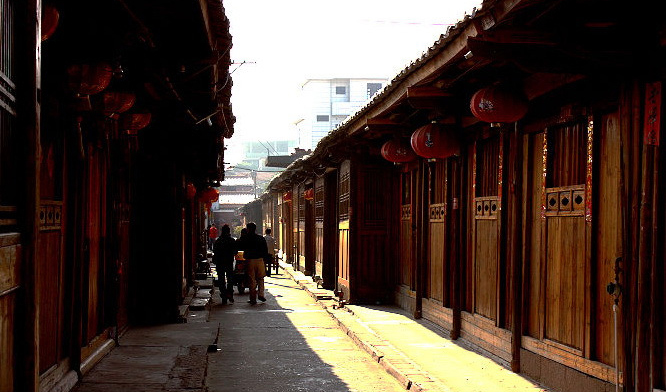 祖先择水而居,并不仅仅因为迷信堪舆学说的“风水”,更是实实在在的生活,没有人能无水而活,没有村民能离水而存。康里没有河流,村尾却有一个湖,名曰鉴湖, 3亩方塘,占村庄的三分之一,建于明嘉靖年间。鉴湖之水说得文雅一些,就是全村生活废水的“归集”(鉴者,照得清脸也,如此湖水却有一个如此文雅之名,可见康里是很有文化的),鉴湖收拢全村滴滴缕缕弃水,蓄积之后从长生位流出,按堪舆学说,乡村长生出水,则乡村人丁兴旺。 在山清水秀的江南,村庄受河流的哺育成长是习以为常,河是乡村的一部分,是乡村的一个肢体,没人对它的存在而在意。没有河,才会体验没有河流的不便,也才会体会河流的重要性。康里全村的生活之水,皆来源于村中四口井,四井皆曰郑公井,郑公井水满足了全村人畜的吃喝拉撒漂流,在红尘凡间经历了一个磨练,村民对此仍感弃之可惜,掘土砌坝成湖,将村庄废弃之水全部收拢入湖,让它在阴阳五行的世界里,再为村庄的兴旺增补风水,然后,从长生位出,浇灌下方的庄稼。 就是这样的风水,让康里的祖先们世世代代坚守在这里。就是这样的风水,让康里的子民在这里生活了几百年来,兴旺了几百年。 没有河的康里,格外在意水,刻意显示河的存在。每年端午举办赛龙舟是在意的表现之一。一个位于高山半坡上的小山村,一个连一条小沟渠都没有的村庄,却偏偏每年举行龙舟赛,一赛三百多年。当然,他们划只能是经改造过的“旱地龙舟”。龙舟形态与传统龙舟无异,康里村民创造性地给龙舟底部安了四个滑轮,人骑其上,用木棍代替船桨在地上后撑,推动龙舟前行,无浪而有汗,不知是否与浪中荡舟有同样的感觉?