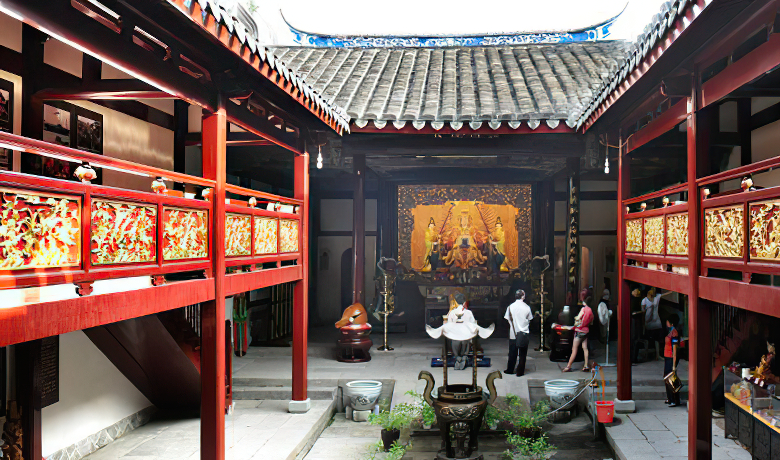 踏着郎官巷的青石板,走到巷子深处,瞧见一片红墙黛瓦,那便是天后宫了。