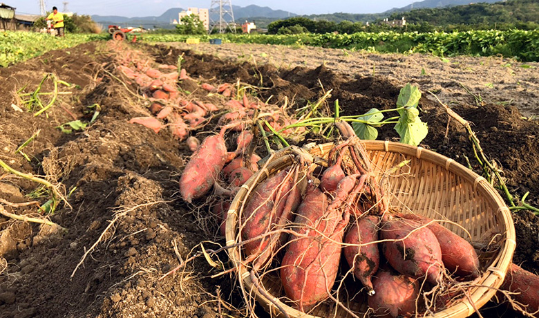 地瓜收获的时候,是我和小伙伴们开心的日子。收地瓜时,总难免有一部分地瓜在拉拔的时候脱离了藤而被误埋进泥土里。小伙伴们欢呼雀跃地会扛把锄头到田里翻掏地瓜。目不转睛地瞅着翻动的泥土,一看见翻出来红色的地瓜,便会马上扒开松散的泥土把地瓜拾起来;有时看到一点红红的根须,用脚一踢,埋在泥土里的地瓜就会滚了出来,捡起那带着泛黄的沙性泥土的地瓜,用手拍一下,便放进竹篮里,那种喜悦的心情真的无以言表。