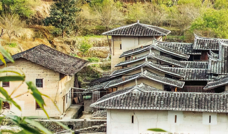 永泰县麟阳村,有一处古厝——“庆湖庄”,至今已有120余年历史。门口一副对联,“仙仑东壶峙,金鸡玉马朝”,准确描述了庄寨四面山峦环抱的地理位置,也形象烘托出群山拱卫朝拜的气势。